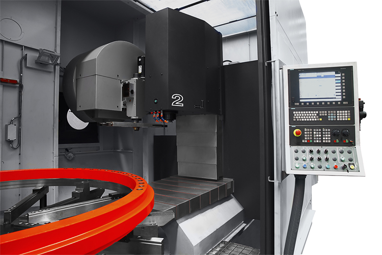 - Opracování dílců s “pendulárním cyklem”, kdy plocha pracovního stolu je rozdělena mobilní přepážkou na dvě samostatná pracoviště a pracovní cyklus probíhá v režimu NSM (Non Stop Machining).