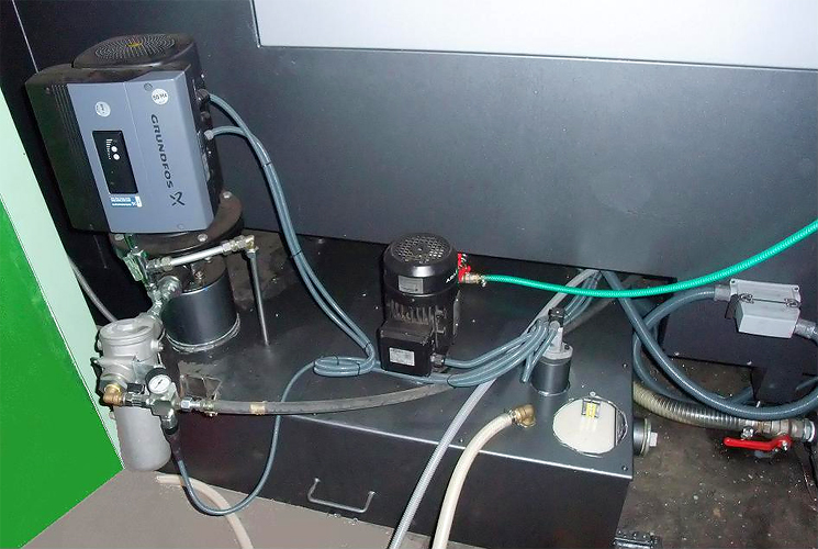 Při využití výkonných nástrojů vyžadujících vnitřní chlazení středem nástroje, lze stroj vybavit agregátem s vysokotlakým čerpadlem. Čerpadlo může být jednootáčkové se stálým tlakem a ručním řízením průtoku regulačním ventilem nebo s elektronickým variátorem a nastavení průtoku je řízeno automaticky CNC systémem v závislosti na konkrétním nástroji zařazeným v pracovním cyklu. Při použití systému vnitřního chlazení nástrojů je doporučeno použít výkonné filtrační zařízení chladící kapaliny.